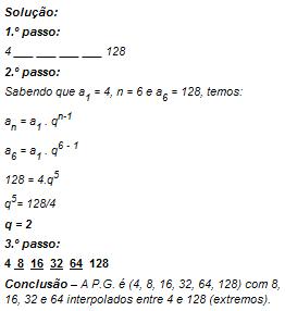 Da mesma forma que em P.A., inserir k meios geométricos entre dois termos extremos a e b de uma P.G. significa obter uma P.G. com k + 2 termos.